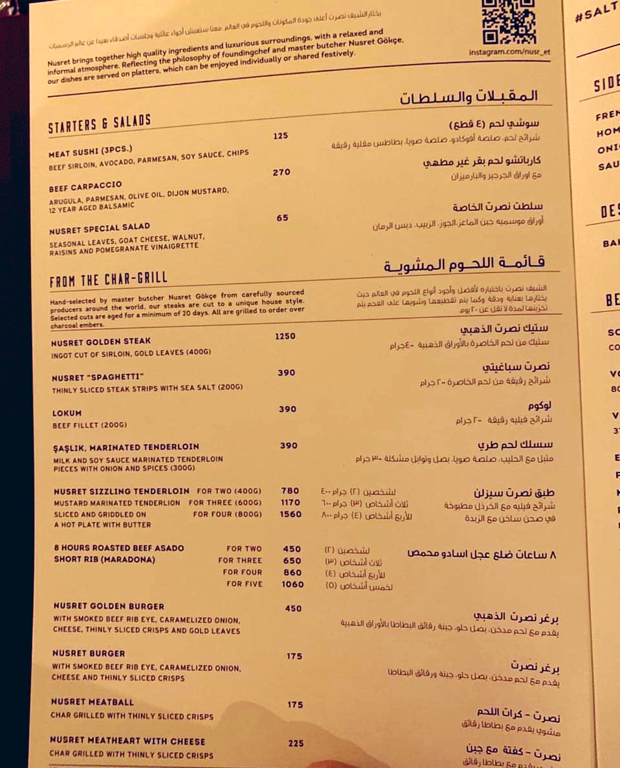 تعرف على منيو مطعم نصرت اسطنبول مع الاسعار تورنا