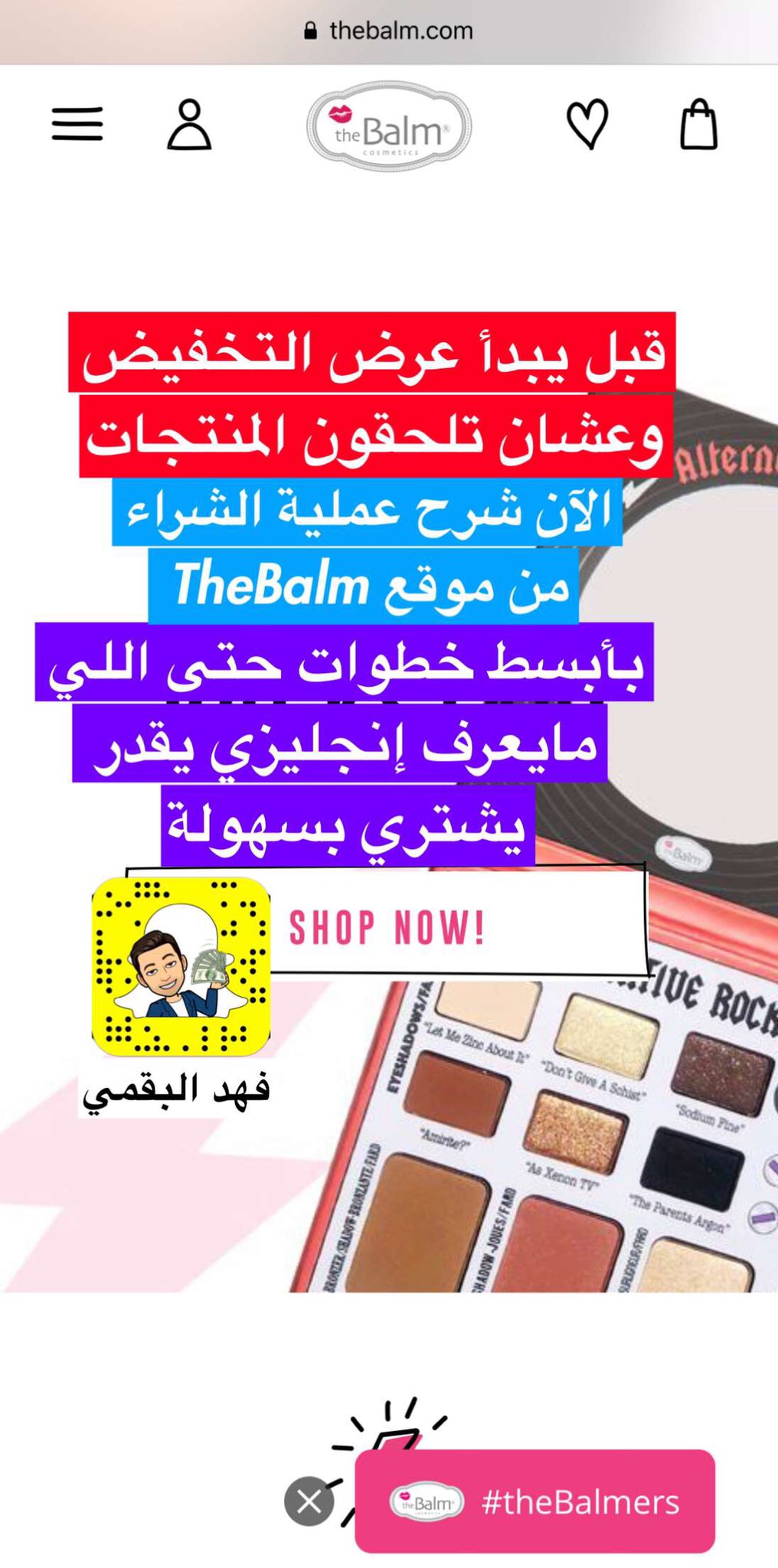 فهد البقمي V Twitter بما أن عرض موقع Thebalm بقي عليه حوالي ساعة الآن في سنابي شرح عملية الشراء منه ونصيحتي لكل من يفكر في الشراء ولا يعرف كيف يستخدم الموقع شاهد السنابات