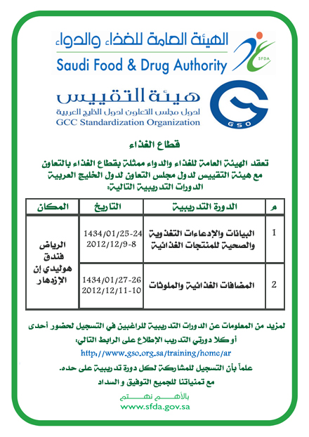 الهيئة العامة للغذاء والدواء تعقد دورات تدريبية بالتعاون مع هيئة التقييس لدول مجلس التعاون الهيئة العامة للغذاء والدواء